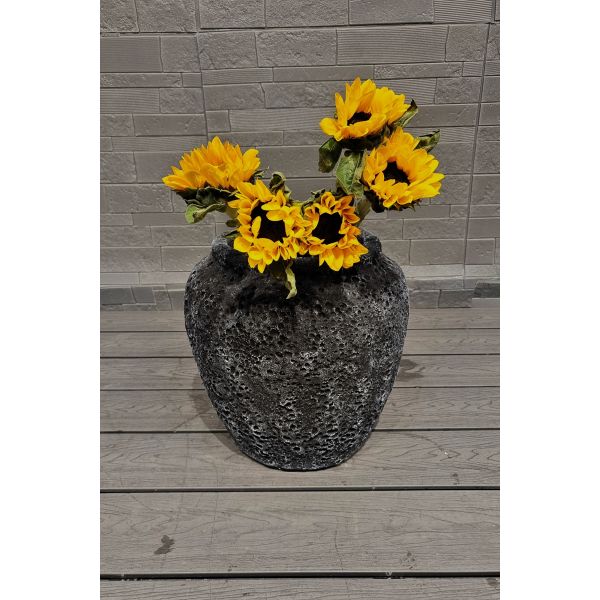 This Clay and Fiber Vase has a long lifespan, capable of withstanding outdoor conditions for 5-6 years and lasting up to 7-8 years when used indoors. Its durability and resistance to weather make it a reliable choice for both residential and commercial settings.