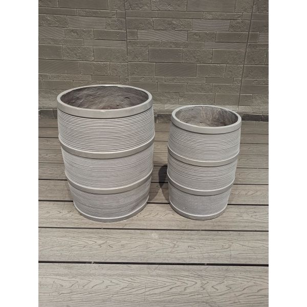 Available in three different sizes -A:Φ300*H410 B:Φ230*H360 - the Fiber Clay Planter is hand-carved with a unique texture finish, adding an elegant touch to any space. Its frost-resistant character makes it suitable for both indoor and outdoor use, whether in a hotel, garden, or home setting.