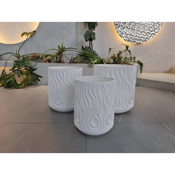 Designed for indoor hotel gardens and homes, this planter is available in third sizes:A:405*405*445mmB:335*335*410mmC:280*280*365mm The cement-reinforced construction ensures durability and stability, suitable for various locations such as patios, gardens, and cottages.